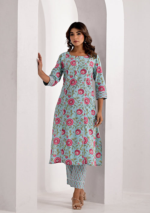 Baby Blue Bloom Kurta Pant Set